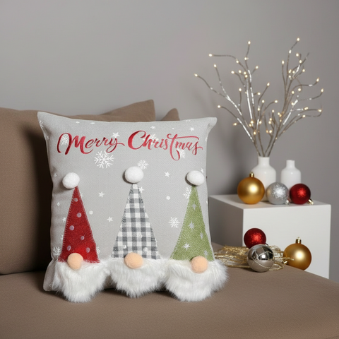 Grey Christmas Gnomes Cushion Cover | 45 x 45 cm